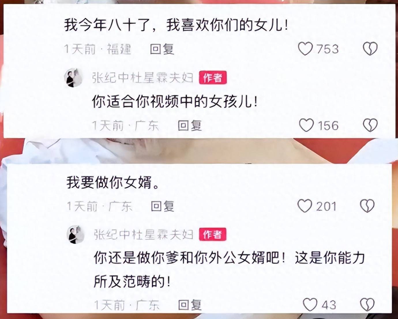 评论区里,有人直接留言"我要做你女婿",甚至还有人管杜星霖叫"丈母娘",这些不合时宜的玩笑话,彻底惹恼了这对夫妻。